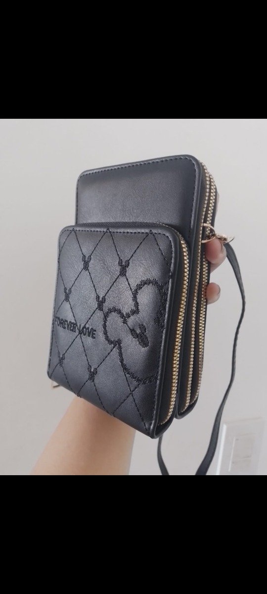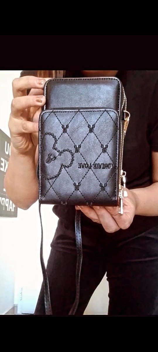 Bandolera de diseñi con detalles bordados del raton mas lindo, correa regulable, compartimientos par cel..llaves ..etc etc