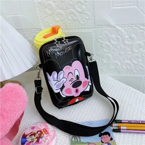 Carterita Porta todo mickey negro rigido ...duro...con correa extendible... (celular, maquillaje, sube , tarjeta, perfime etc etc)medidas 15 x 20 cm aprox.