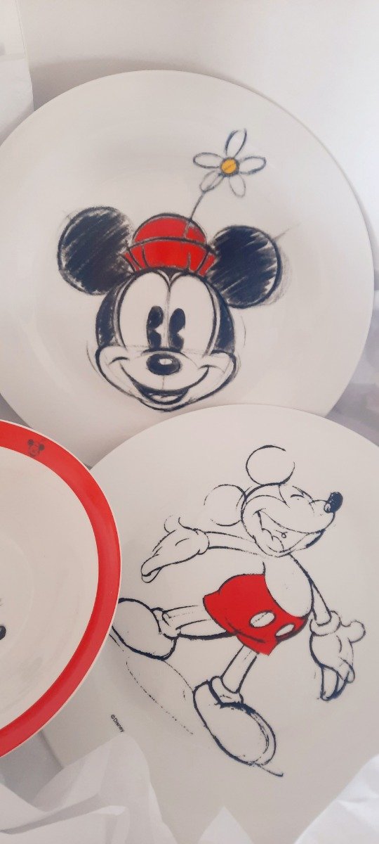 Contiene 4 piezas: 2 bowl/ cerealero ..2 platos de uso diario MICKEY Y MINNIE CERAMICA