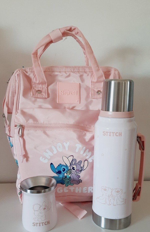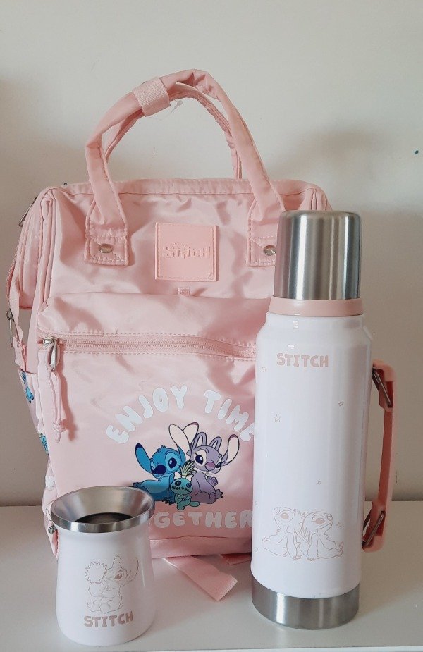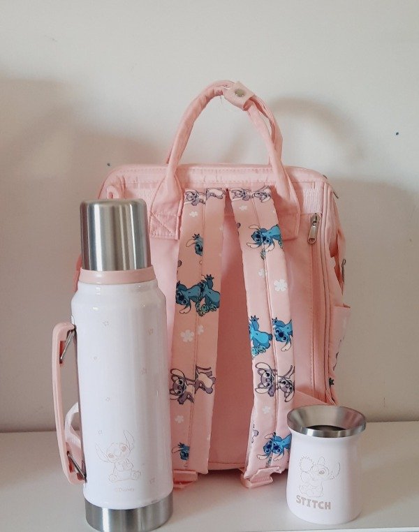 Mochila + Termo 1.2 litro de capacidad acero inoxidable con manija sostenedora + mate en conjunto